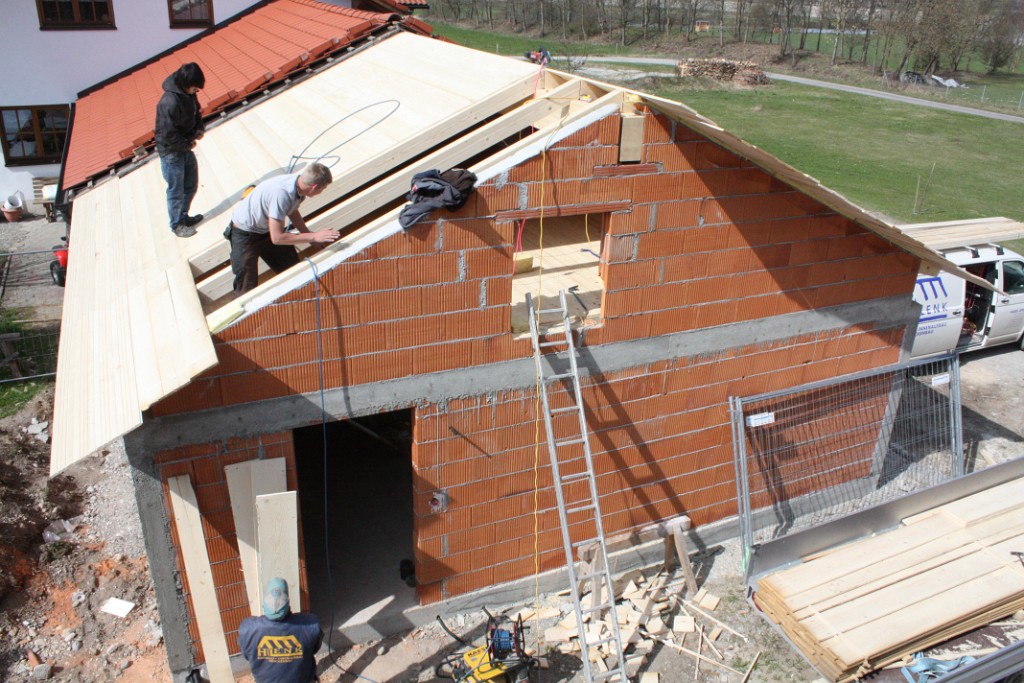 • 29. März - das Garagendach kommt pünktlich zum Richtfest