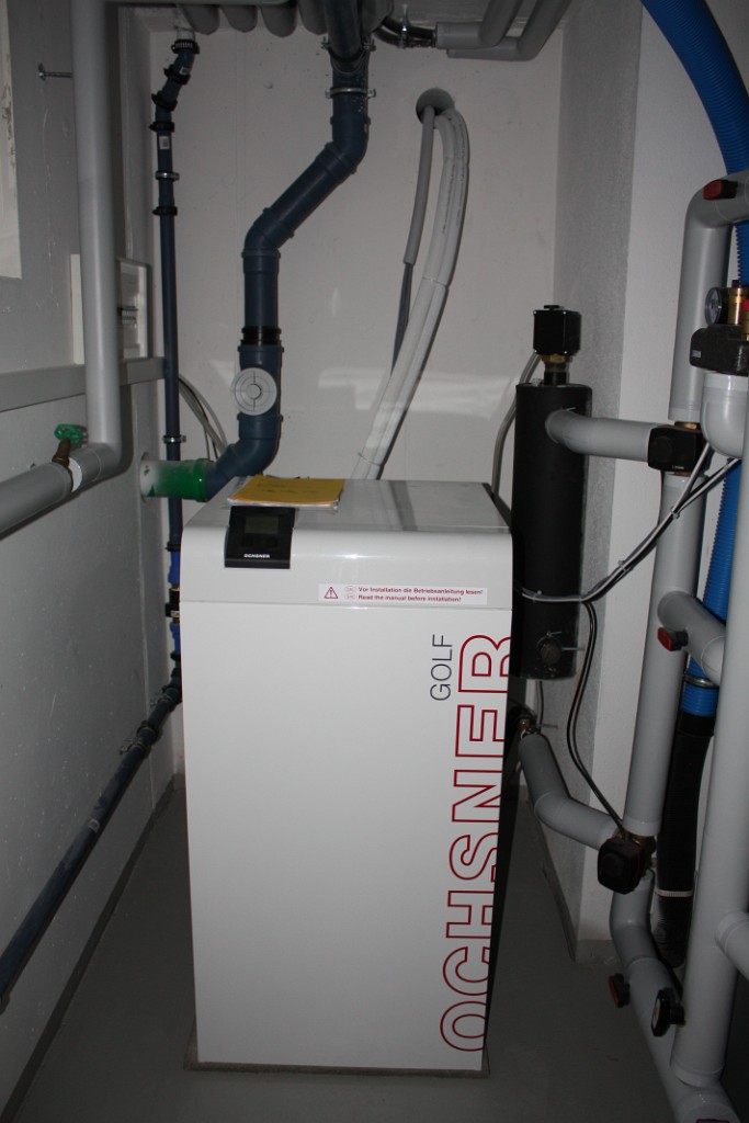 • 1000-Liter Schichtenspeicher für Fußbodenheizung (40°C), Brauchwasser (45°C) und Zusatzheizkörper in den Bädern.